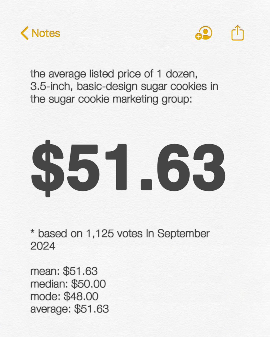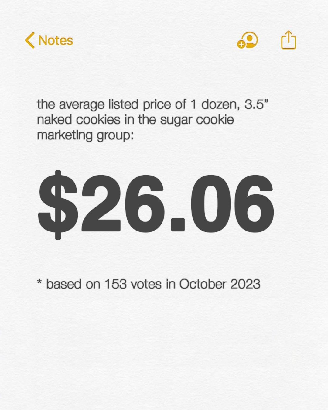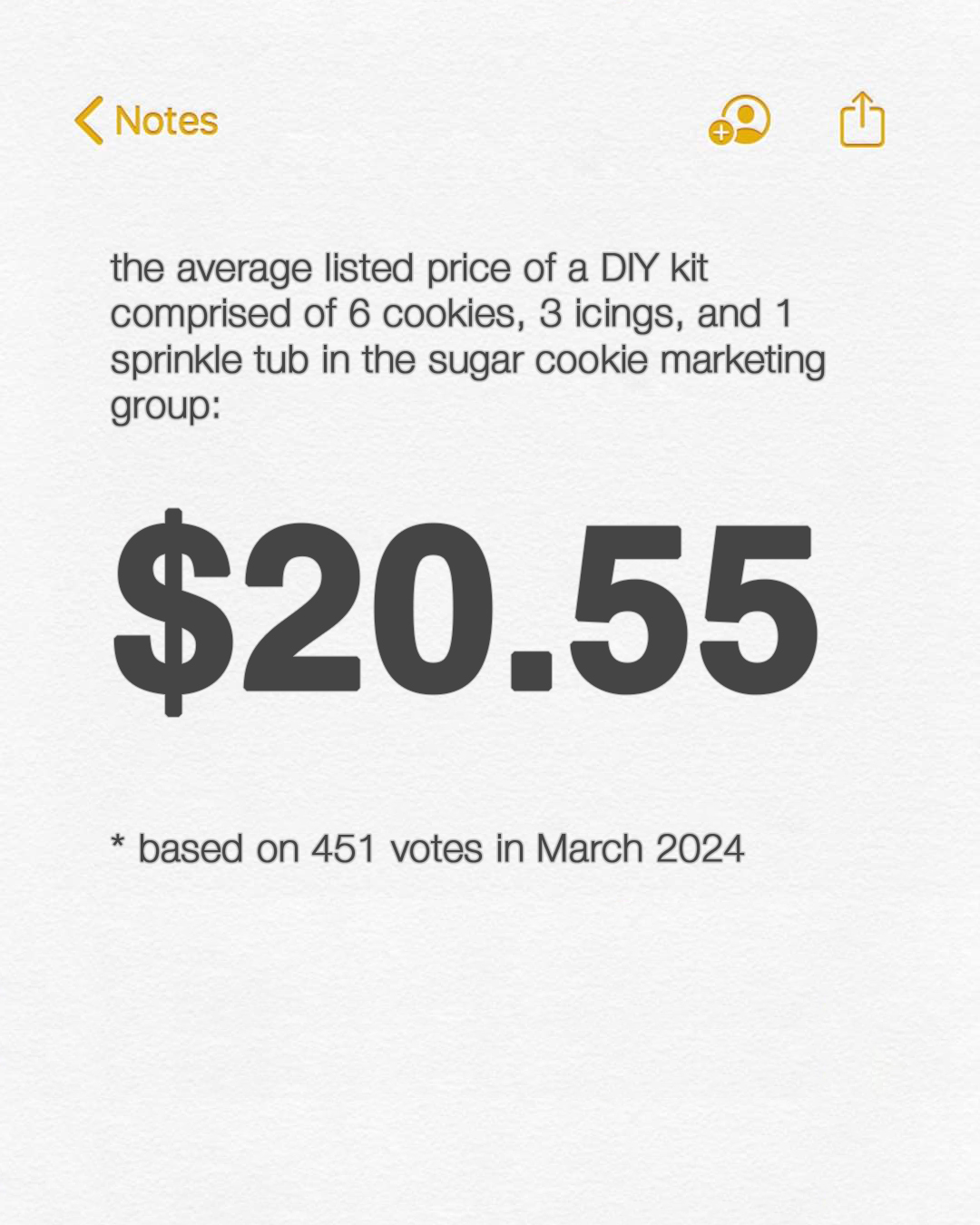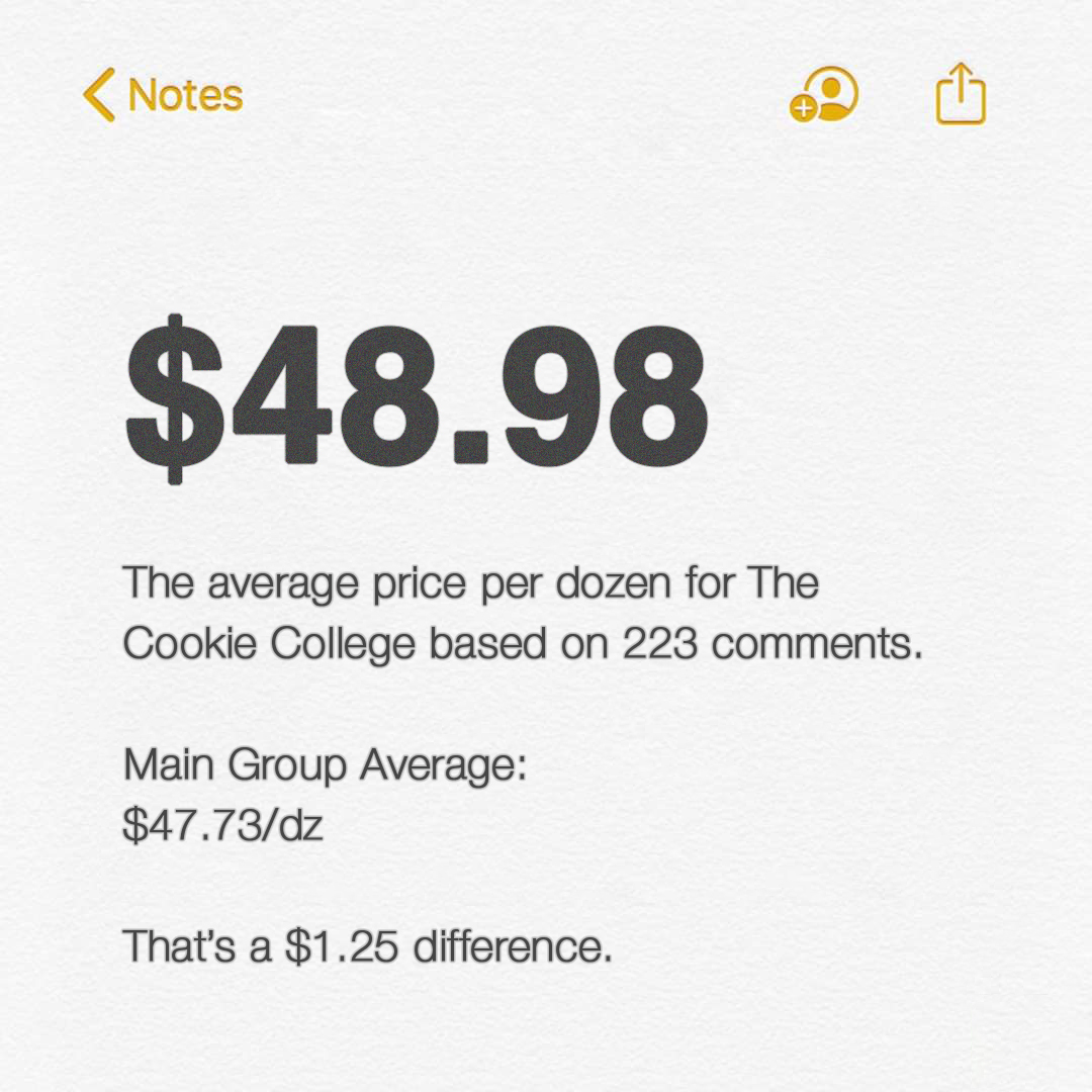 We're not in the business of working for free - so thus our pricing must cover all our costs + our profit. That way we can actually grow our bakery businesses year over year. With the Sugar Cookie Marketing group, we take group polls with hundreds of data points to find the average pricing for products across the US. Following a pricing formula, you can ensure your cookies are takin' you all the way to the bank.