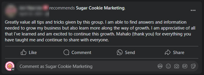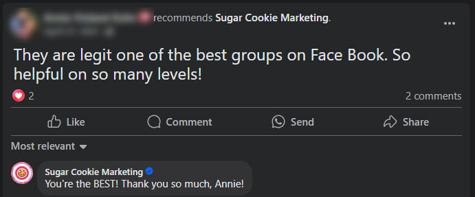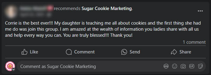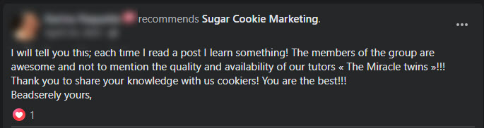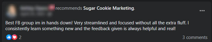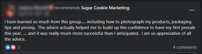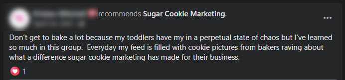 In October 2020, we took that same concept and applied it to the Sugar Cookie Marketing Group - a Facebook group comprised of tens of thousands of bakers looking to turn the internet into their 24-7 sales engine.