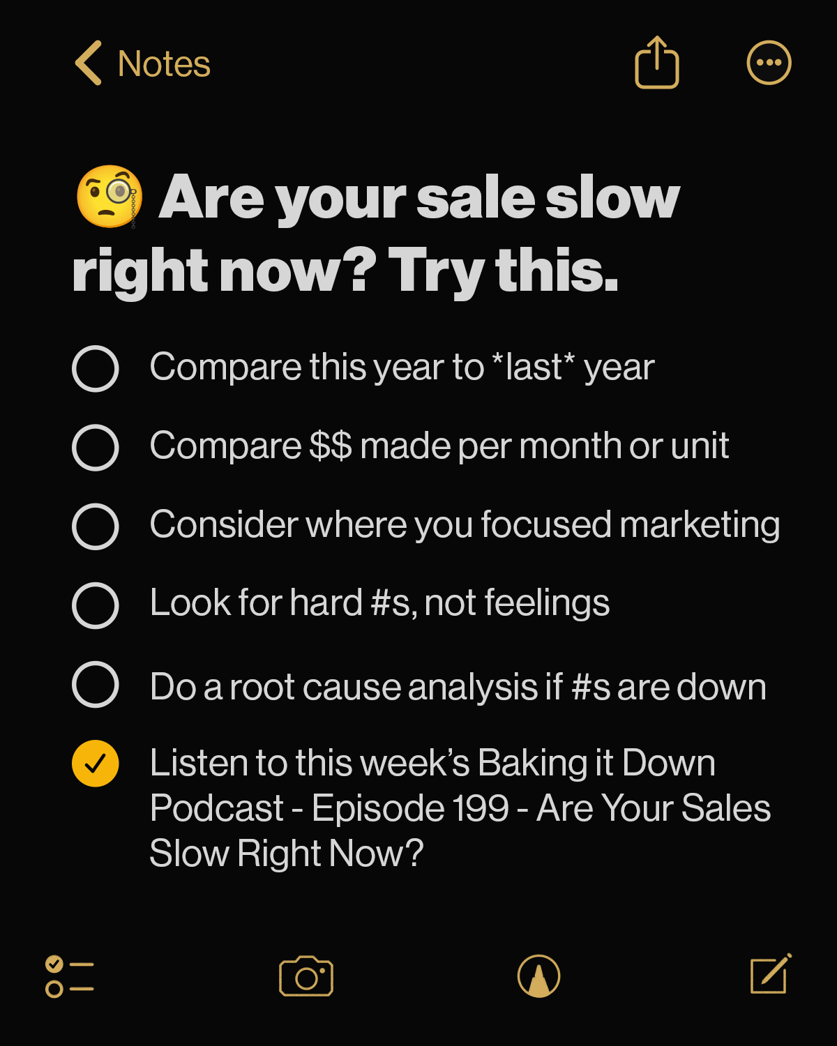 π Snag this podcast on any major podcast player (Spotify, Apple Music, Audible, Amazon Music, or watch it on YouTube) by searching for Baking it Down - Episode 199 - Are Your Sales Slow Right Now?