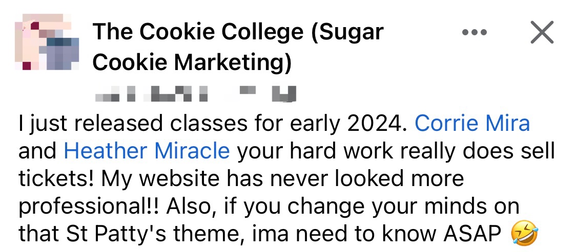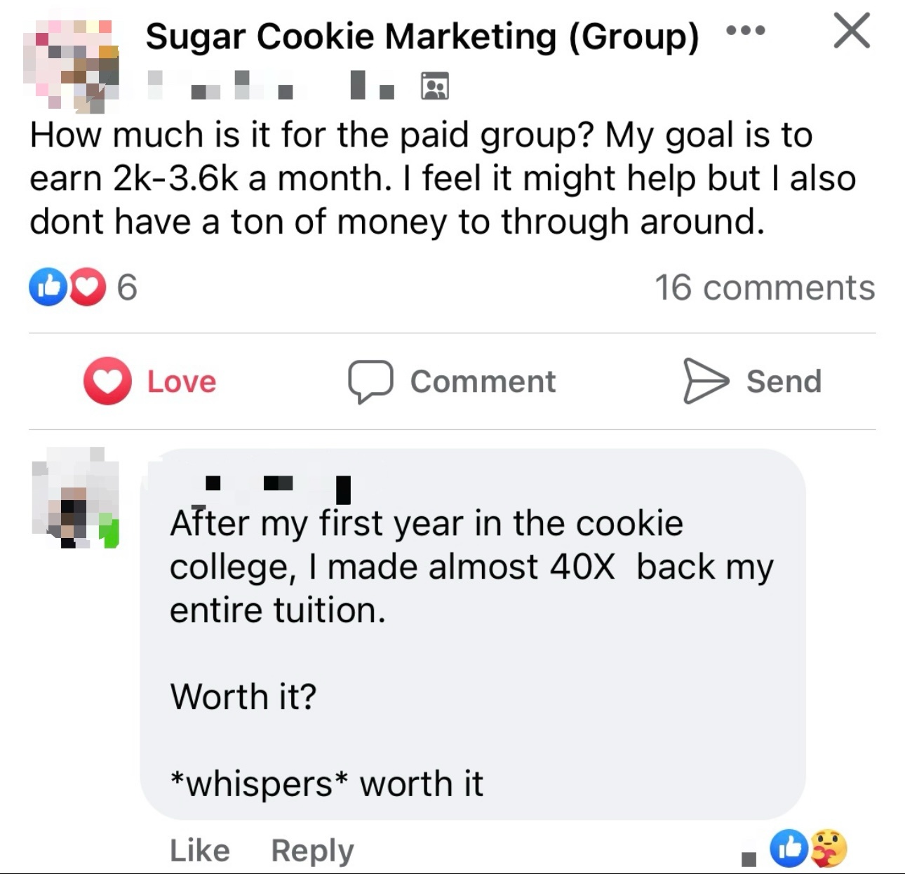 Real reviews from real paid members! Hear it from the mouth of your future roomies from The Cookie College private FB Group!