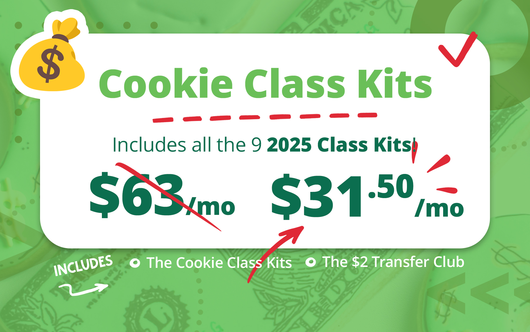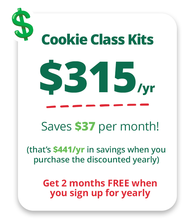 Don't want a membership? Don't worry! We're including a one-time purchase option for $10 per class on our 2023 and 2024 Cookie Class Kits digital downloads! That means you get everything you need to prep, plan for, and promote a Cookie Class at a steep discount with no monthly payment.