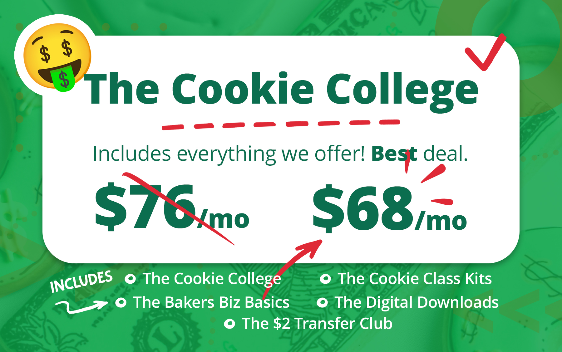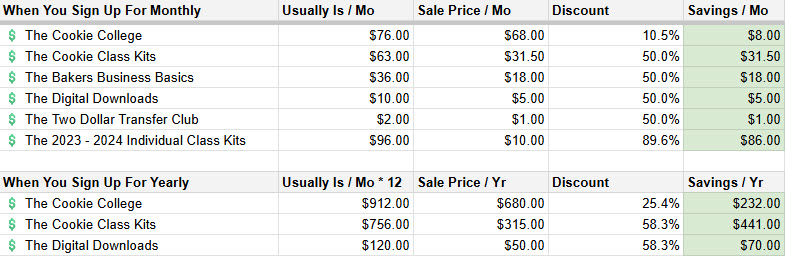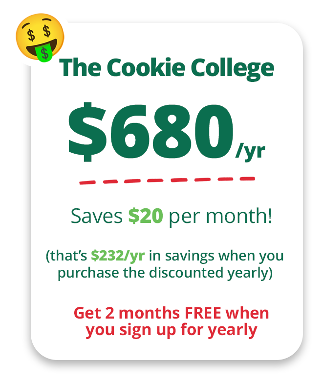 Again, that's The Cookie College ($68/mo or $680/yr during this sale). It's the biggest bang for your buck and the best value we're offering!