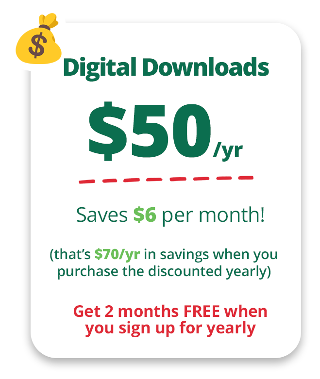 Below that is the discount breakdown when you sign up for yearly plans. With our yearly plans, you get an additional two months free (note - only these three memberships have yearly options).